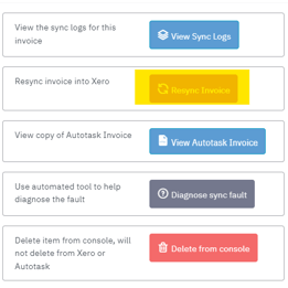 There are times when you may need to force an invoice to sync from Autotask to Xero again. This is commonly done when: