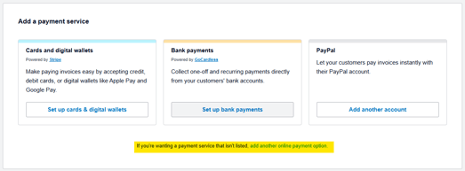 At the bottom of the page is a a option to add another online payment option. Click that