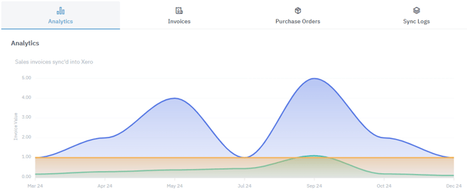 Visualizes your sales data over time. This graph tracks successfully synced invoices, helping you monitor billing trends and volume month-over-month.