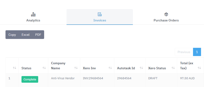 Unlike invoices, Purchase Orders are pulled from Autotask in a single process. They are typically processed immediately after the invoice queue is clear.